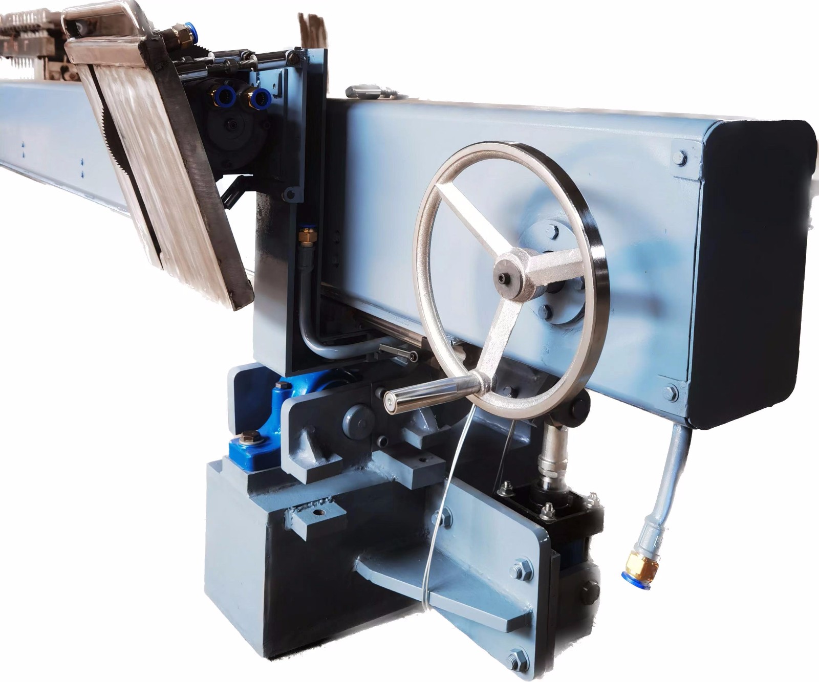 在紙機干燥部(在施膠壓榨、在線涂布機尾部之前)可根據(jù)用途使用兩種切紙割刀。 當紙機車速超500m/min,建議使用噴水針,特別是當進入紙繩系統(tǒng),需要一個高質(zhì)量的、無塵的引紙繩已達到引紙的可靠性。 在紙機車速在500m/min以下時,使用圓盤割刀,但決不能使用固定割刀,它可以撕裂并毀壞引紙窄條,并引起紙業(yè)斷頭,以及帶來引紙麻煩。